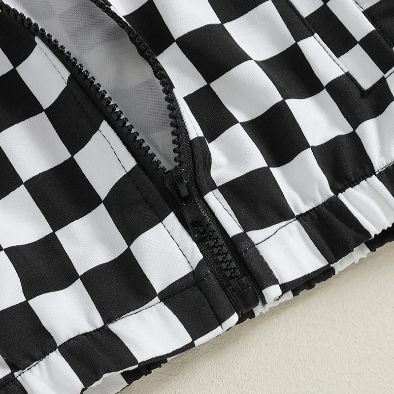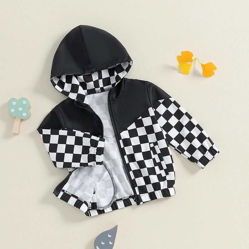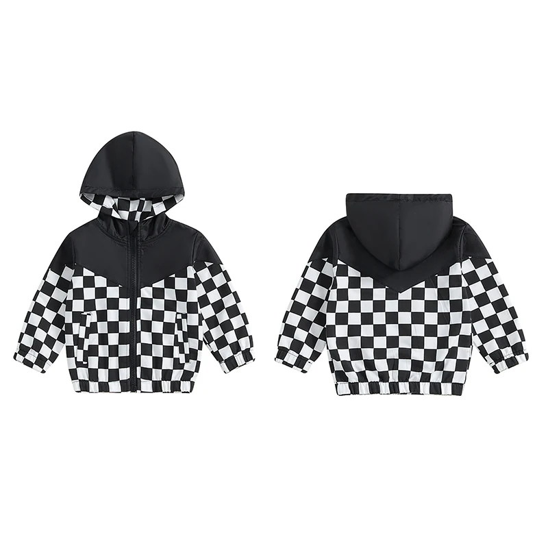 Toddler Girls Boys Hoodies Jacket Checkerboard Zip-Up Hooded Long Sleeve Coat Fall Winter Kids Clothes OuterwearSize (cm)