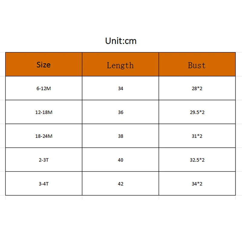 6-12M Length: 13.39 Bust: 22.05 Advised Age: 6-12 Months